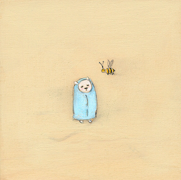 a bear in a blue blanket with a bee | original