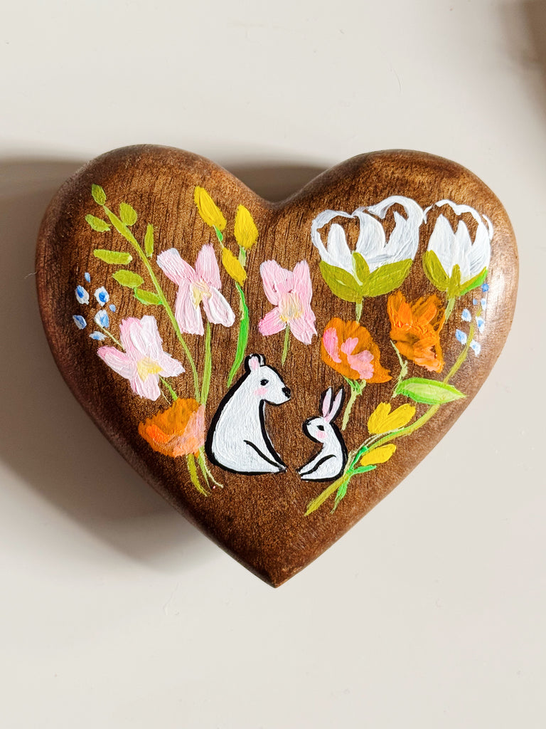 - wooden heart measures approximately 4 1/2 x 4 1/2